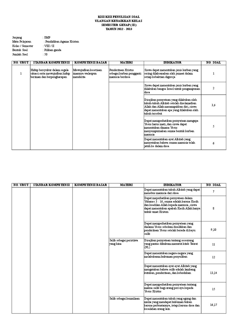 50 standar kompetensi hidup bersyukur dalam segala situasi serta mewujudkan hidup beriman. Kisi kisi ukk agama kristen kelas 7. Kisi kisi uas pendidikan agama kristen kelas 7, 8, 9 semester 1 tahun 2017/2018 ini merupakan kisi2 terbaru yang mungkin sesuai untuk digunakan pada ujian akhir semester ganjil tahun ini. Kunci dan perangkat tik smp kelas 9 by sulistiyo wibowo 28819 views. Soal uts agama kristen kelas viii semester ii. Latihan soal ukk pat pai kelas 8 semester 2 genap kurikulum 2013. Selain itu juga contoh soal ini juga dibuat dengan. · mengakui peran allah dan sekolah sebagai pendidik utama. By diva pendidikan 49225 views. Full soal ulangan semester 1 image by louisemavc. Ulangan kenaikan kelas iii agama kristen. Buku pendidikan agama kristen kelas 8 smp kurikulum 2013 revisi. Pendiidikan agama kristen ditujuan untuk siswa yang beragama kristen, jadi tidak wajib untuk siswa maupun siswi yang berada di agama lainnya.