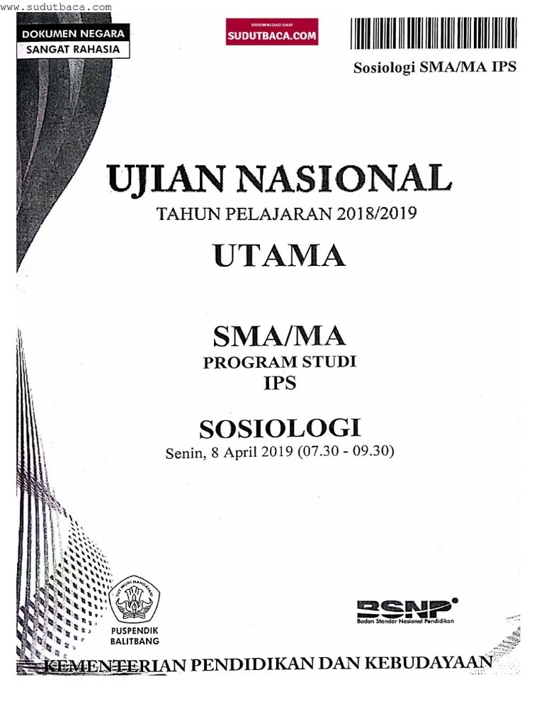 Sosiologi adalah salah satu cabang ilmu sosial yang mempelajari tentang aspek sosial manusia dalam bermasyarakat. Jual buku kumpulan soal dan pembahasan un dan usbn sosiologi sma ips oleh mur ifatul miskiyah, s.pd. Buku kumpulan soal un bahasa indonesia sma 2019 sma. Terbaru dan terlengkap hanya di . Ujian nasional atau un sma akan dilaksanakan dengan moda ujian nasional berbasis komputer .